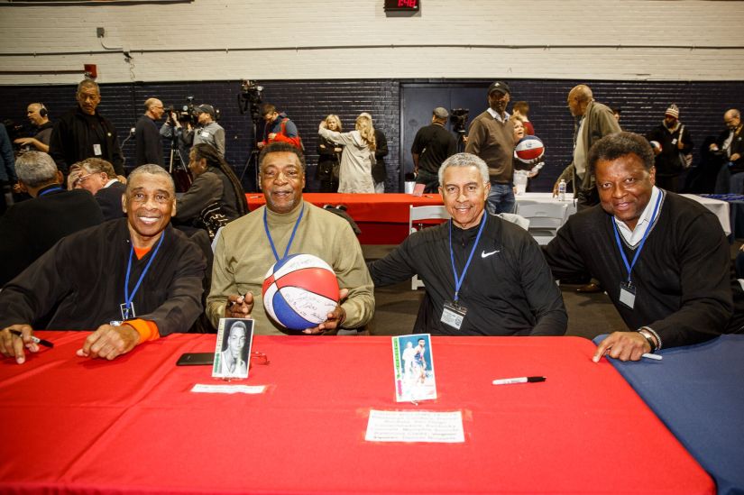 Mayor Joe Hogset, Councilman Vop Osili, Hall of Famer Spencer Haywood, Scott Tarter & Ted Green. Photo by Ron Sanders.