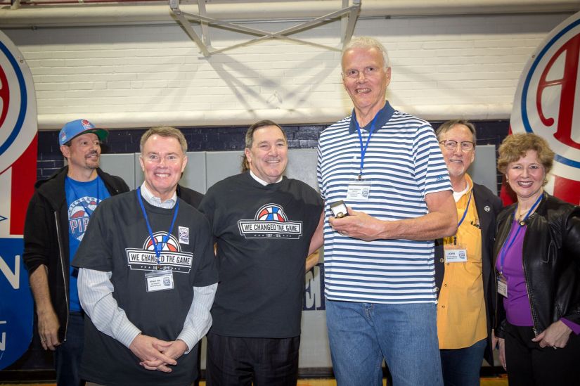 Mike Storen’s team with former Indiana Pacers Rick Mount, Freddie Lewis, Mel Daniels & Roger Brown.