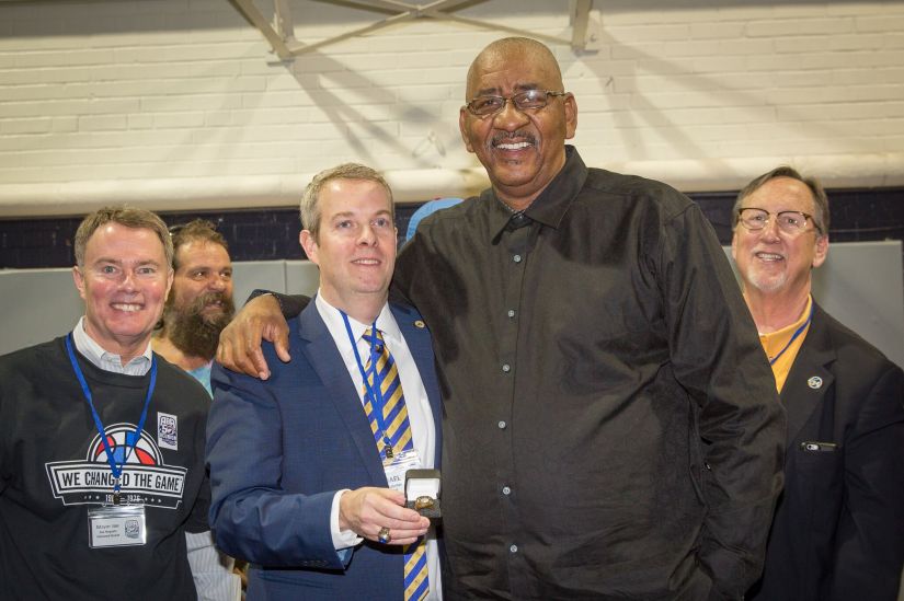 On Saturday April 7, 2018, Indianapolis was the setting for the 50th anniversary reunion of the American Basketball Association hosted by the Dropping Dimes Foundation. A special Saturday event was held at historic Hinkle Fieldhouse on the campus of Butler University. The choice of venue was not by accident. Hinkle had hosted the first ABA All-Star game on January 9, 1968. The East team, led by Pacers stars Roger Brown, Mel Daniels, Bob Netolicky and Freddie Lewis, defeated the West team by a score of 126 to 120. Despite being on the losing side, somehow Larry Brown was named MVP of the game, even though he wasn’t even the leading scorer on the west squad and was outscored by 3 members of the winning east squad. I should also mention that Brown didn’t show up for the reunion either but somehow got a ring.