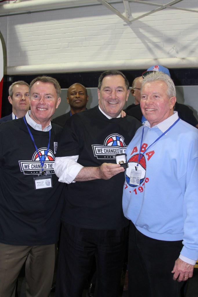 Mayor Joe Hogsett with ABA Pacers John Fairchild and Ron Perry. Photo by Lauri Mohr of Imagine Mohr Photography.