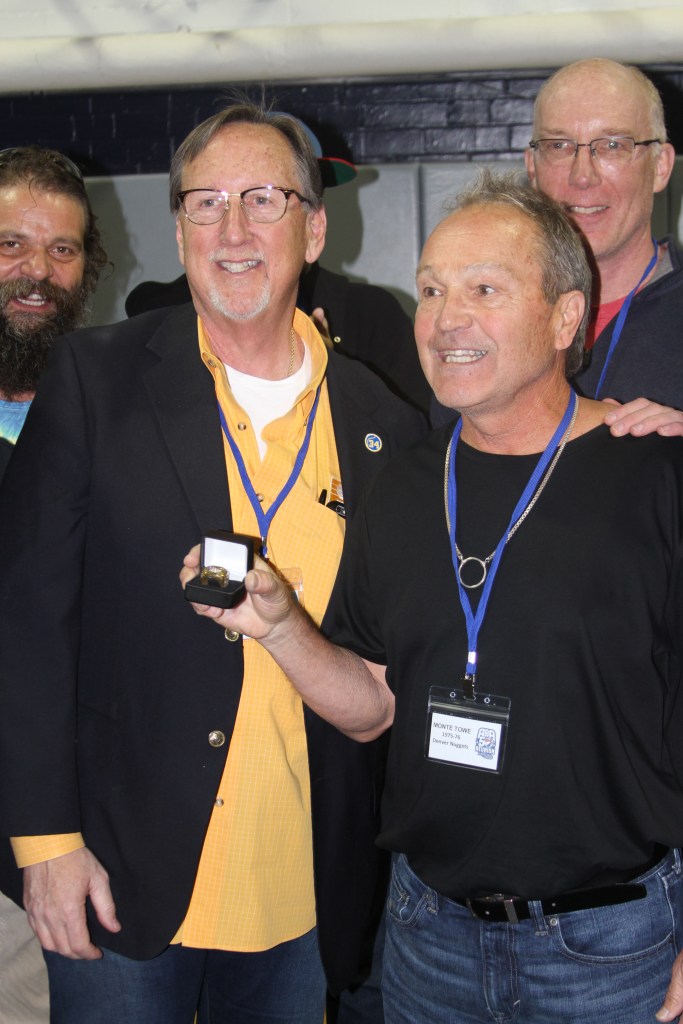 Meantime, Bob Netolicky was working on finding a ring sponsor on his own. Neto contacted his old San Antonio Spurs boss, Red McCombs. The 90-year-old McCombs, who attended the 30 year reunion but could not attend the 50th, not only owned the ABA Spurs, but also the NBA Denver Nuggets and NFL Minnesota Vikings. Neto secured a ring co-sponsorship from Red as well. So, after weeks with no sponsor, we now found ourselves with two. The rings were completed and delivered on Friday April 6th, mere hours before the players arrival.