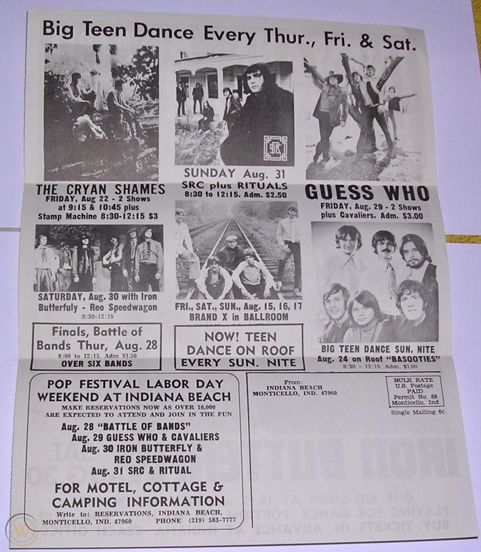 Along with the shows came images of the band members roaming the midway, sunning on the beach, swimming in the lake, crashing the bumper cars and riding the rides alongside Hoosiers who had no idea who they were. Legend claims that the Turtles rode their motorcycles down the midway and that Cher took a long ride on the skyride. But wait, let me blow your mind with a partial list of bands and the dates they played the Beach Ballroom: