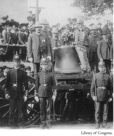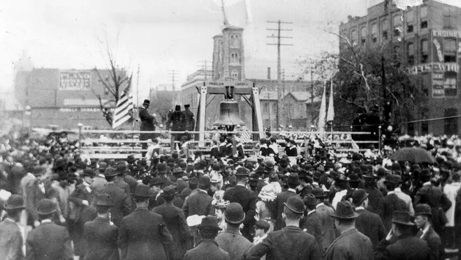 The Indianapolis News reported, “Patriots came with such a rush to see the ‘Voice of Freedom’ that the ropes stretched around the car and along the street were incapable of holding the throng in check. Captain Charles Dawson began shouting at the top of his voice: ‘Get your tickets ready. Be sure and buy your tickets before you get in line!’ Of course, no tickets were necessary, but the cry had the desired effect. Hundreds fell out of the jam to make inquiries regarding tickets, and the police were then able to get the line properly formed.” The article details a strange phenomenon that swept that crowd. “When the crush was at its worst, a man passed up his matchbox to one of the policemen and asked that he touch the bell with the box. He felt that the mere touching of the bell would hallow the matchbox. Instantly, the policemen on guard were besieged with requests that they touch the bell with rings, ribbons, watches, canes, handkerchiefs, and a hundred other things.” Mothers and fathers handed babies up to the policemen for a rub against the bell. One child fainted amid the confusion. It resulted in a panic or sorts and “the touching incident had to be closed by the police for the sake of safety.”