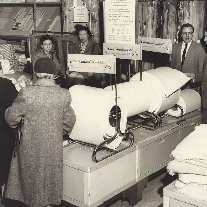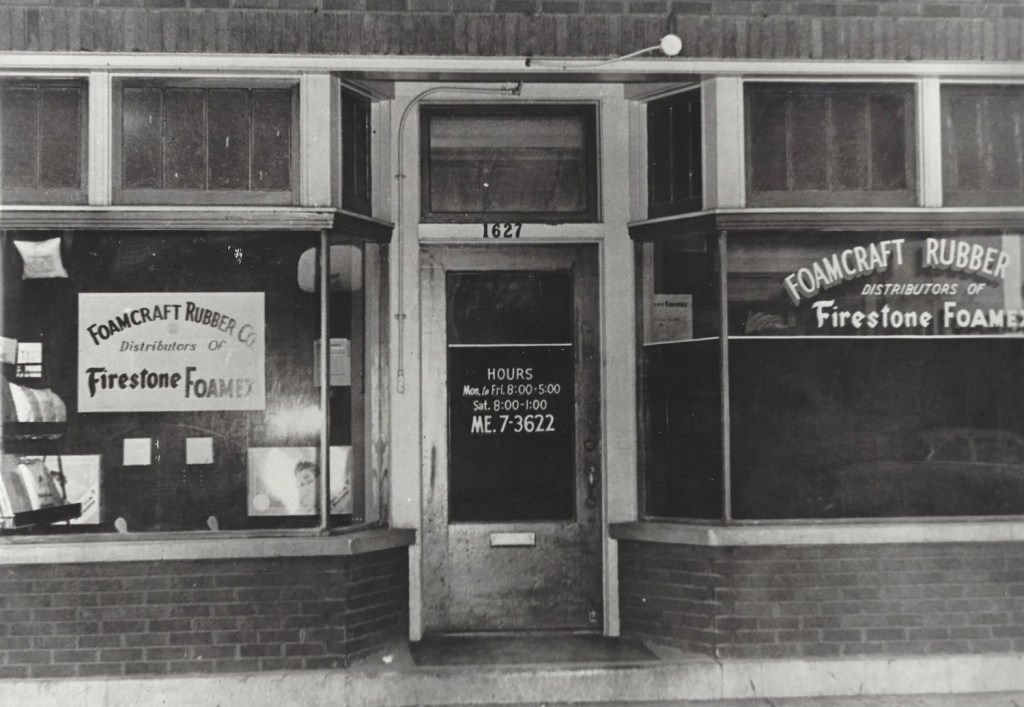 Foamcraft still exists. According to their website, “In 1952, Robert T. Elliott, the founder of our company, started the Foamcraft Rubber Company. As a District Sales Manager for the Firestone Tire and Rubber Company, he was responsible for helping to start several foam rubber distributors. Foamcraft was his special passion, though, and in founding our company, he set a foundation for business integrity and dedication to service, as well as a vision to develop long-term relationships with our customers.” Foamcraft makes specialized cushioning used in furniture, beds, minivans, boats, and other products. The company buys large blocks of foam rubber called “Buns” or “Blocks” and cuts them to smaller sizes and shapes as needed by their customers. It was, and remains, a family-run operation with a very high-tenured workforce staffed by generations of families working “cutting foam” for a variety of customer products. The company boasts a 99.9% on-time production and delivery reputation.