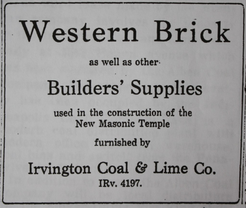 On August 3rd, 1922, an ad on page 10 of the Indianapolis Star boasted that the Irvington Coal & Lime Company supplied the “Western Brick as well as other builder’s supplies used in the construction of the new Masonic Temple,” a.k.a. Irvington Masonic Lodge 666, whose cornerstone was laid the year before. Adam was quick to point out to visitors to the property that a portion of the foundation for the old brick factory remains in place several yards away from his studio entrance. Adam informed, “In the early 1950s, a company called Foamcraft bought the building.”